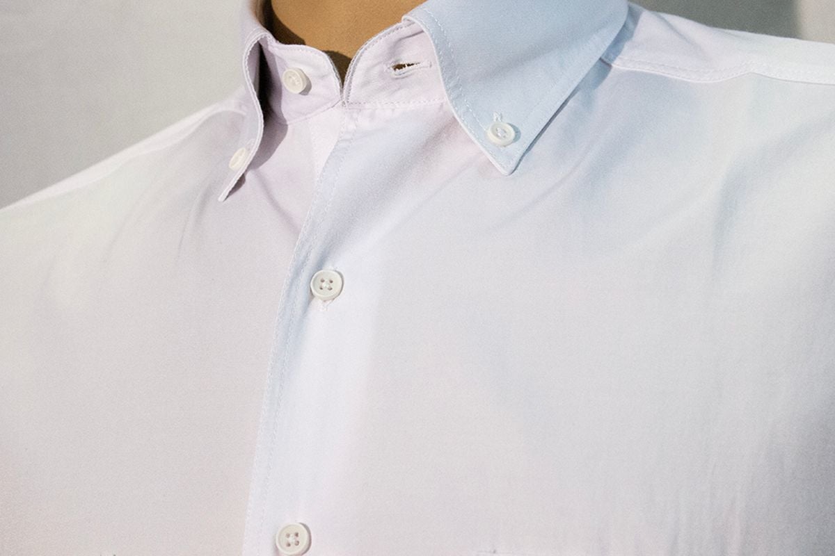 %80 Pamuk %20 Poliester Saten görünümlü çift cepli beyaz gömlek