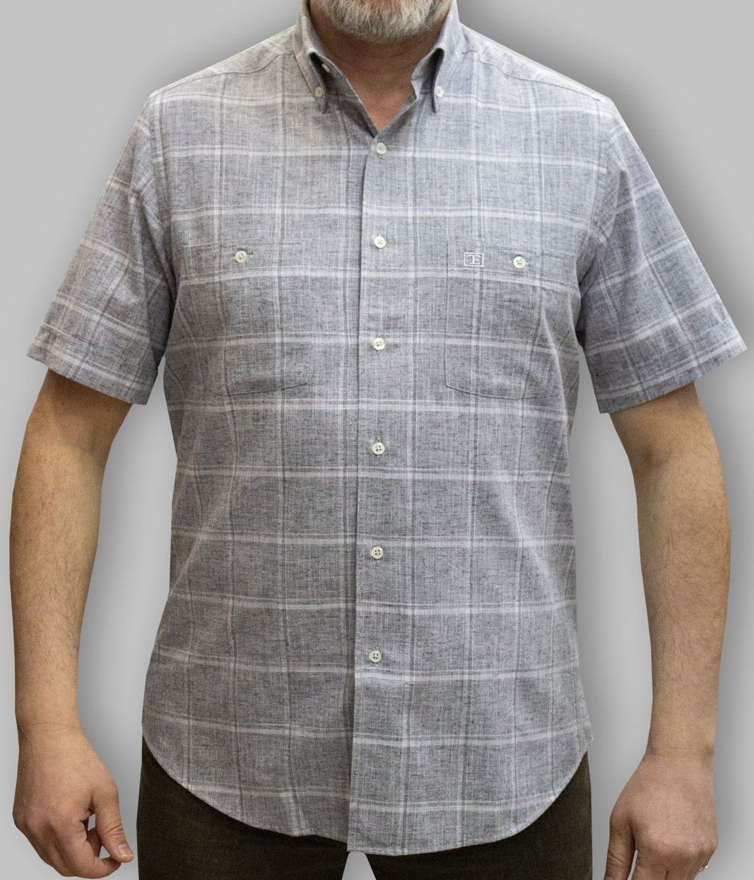 %80 Pamuk %20 Poliester keten görünümlü kısa kol gömlek