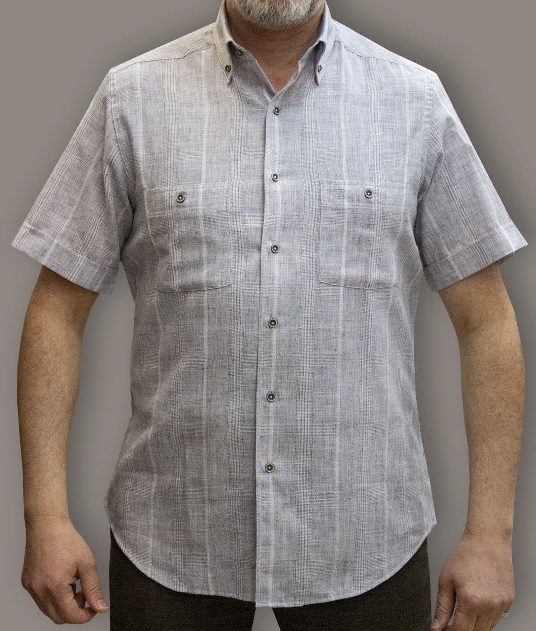 %80 Pamuk %20 Poliester keten görünümlü kısa kol gömlek