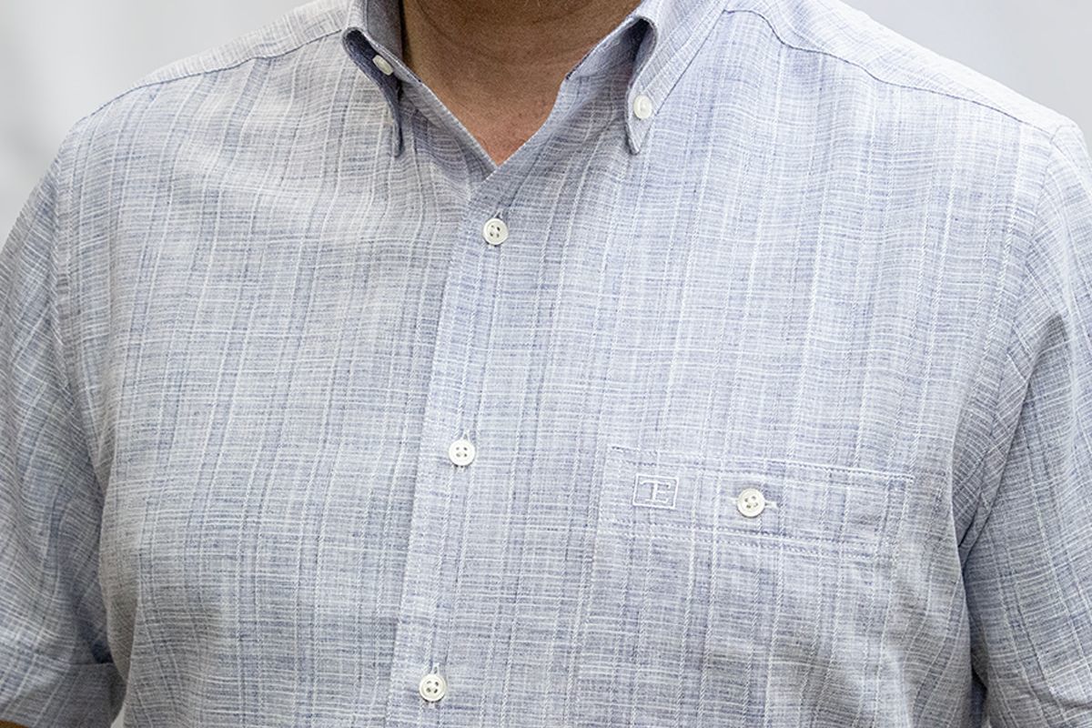 %80 Pamuk %20 Poliester keten görünümlü kısa kol gömlek