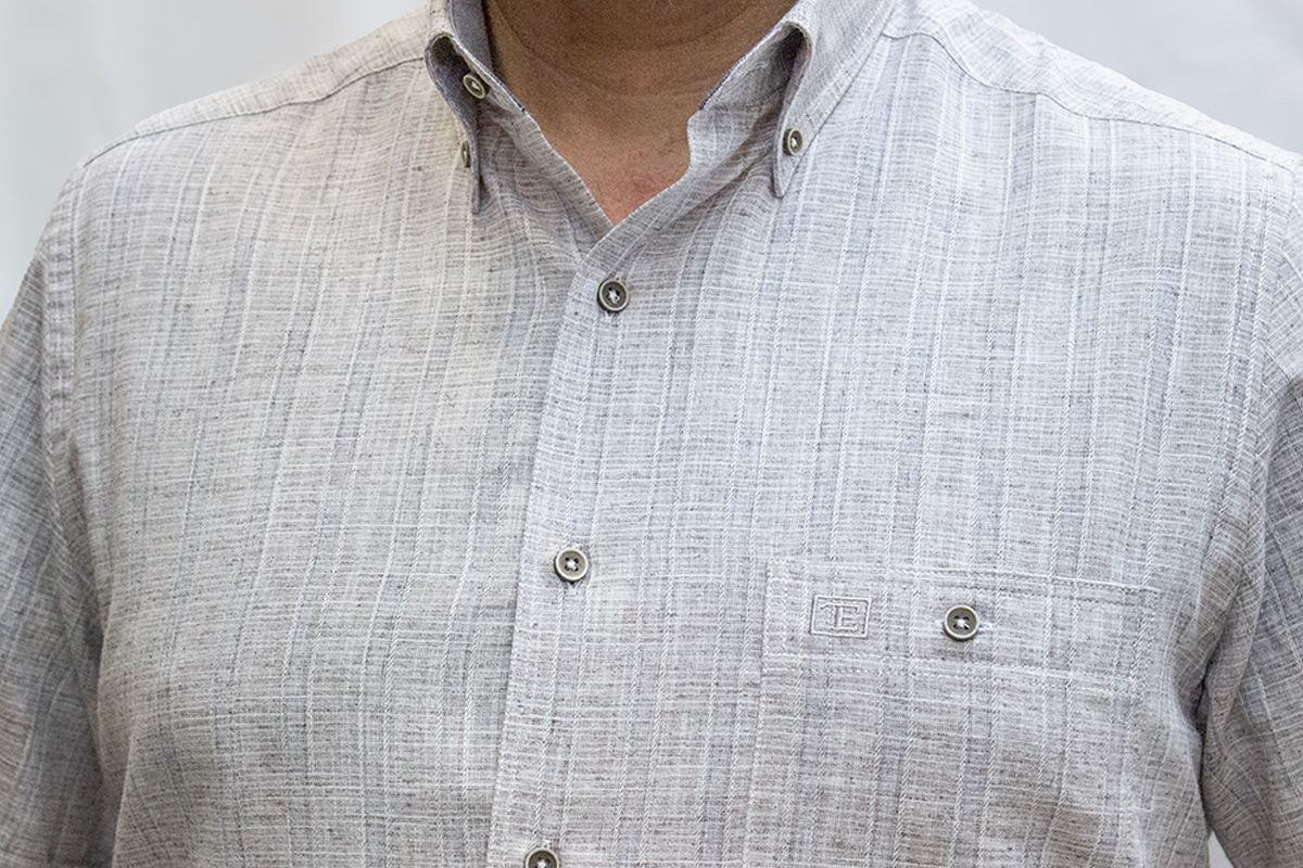 %80 Pamuk %20 Poliester keten görünümlü kısa kol gömlek