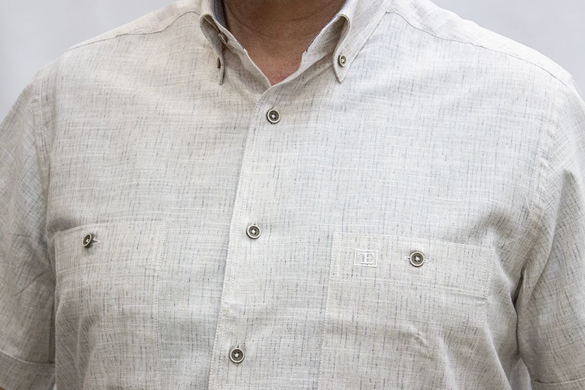 %80 Pamuk %20 Poliester keten görünümlü kısa kol gömlek