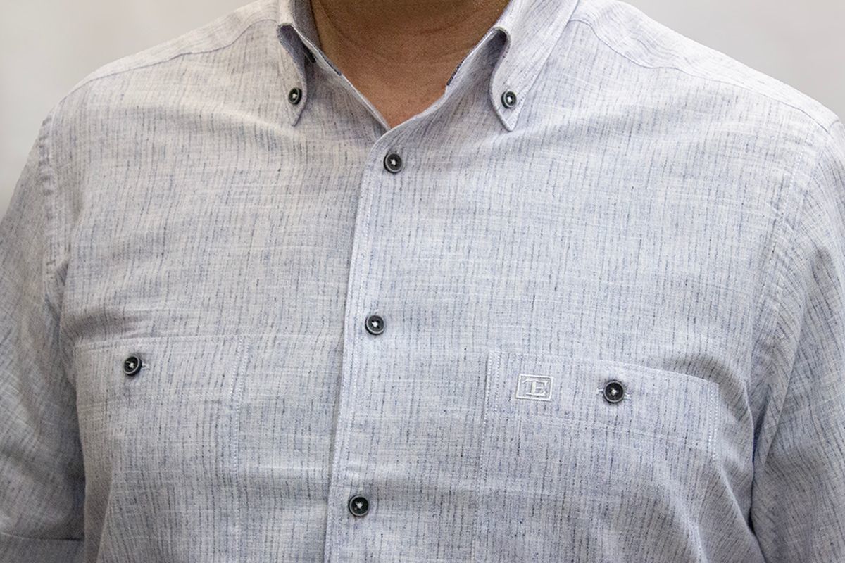 %80 Pamuk %20 Poliester keten görünümlü kısa kol gömlek
