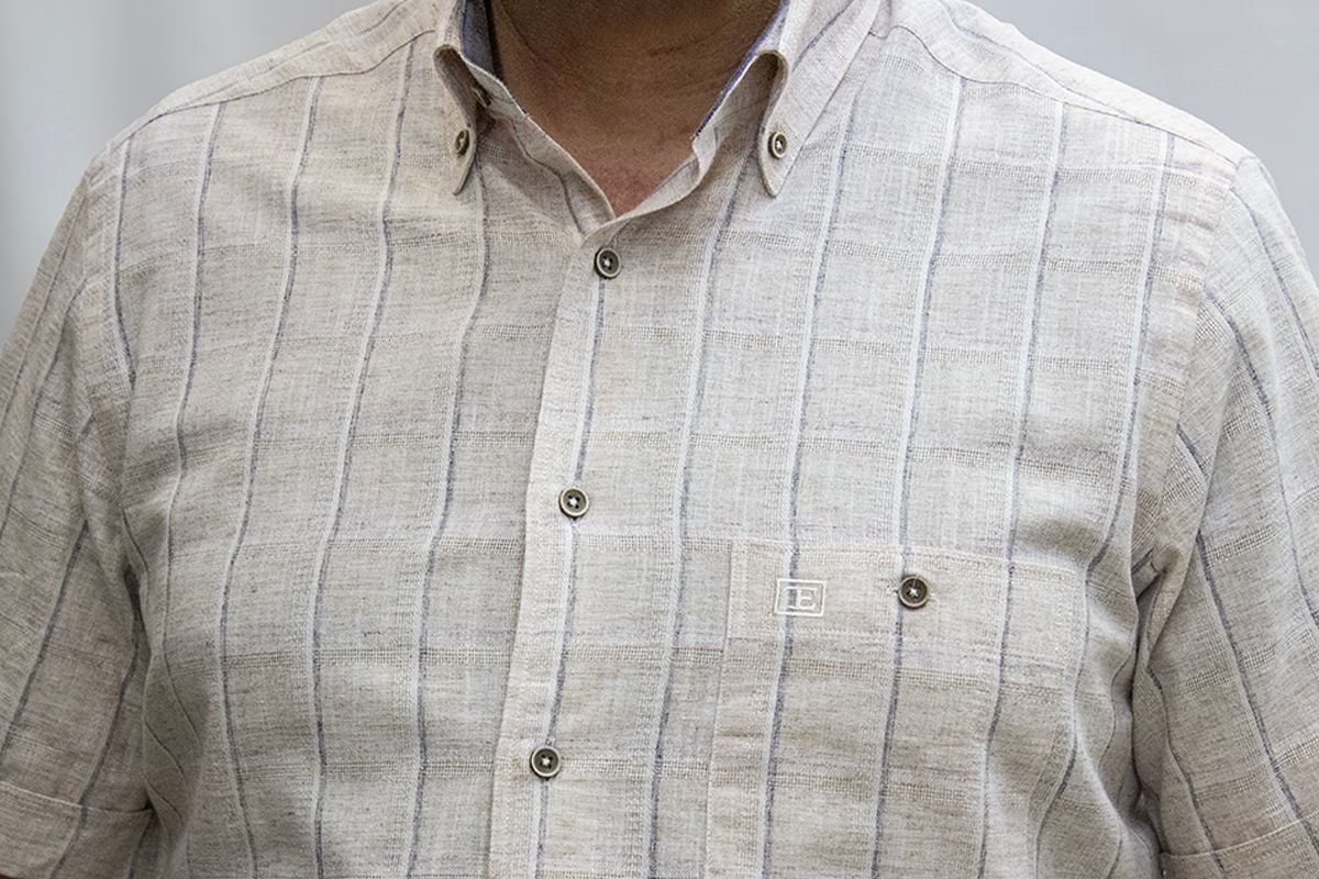 %80 Pamuk %20 Poliester keten görünümlü kısa kol gömlek