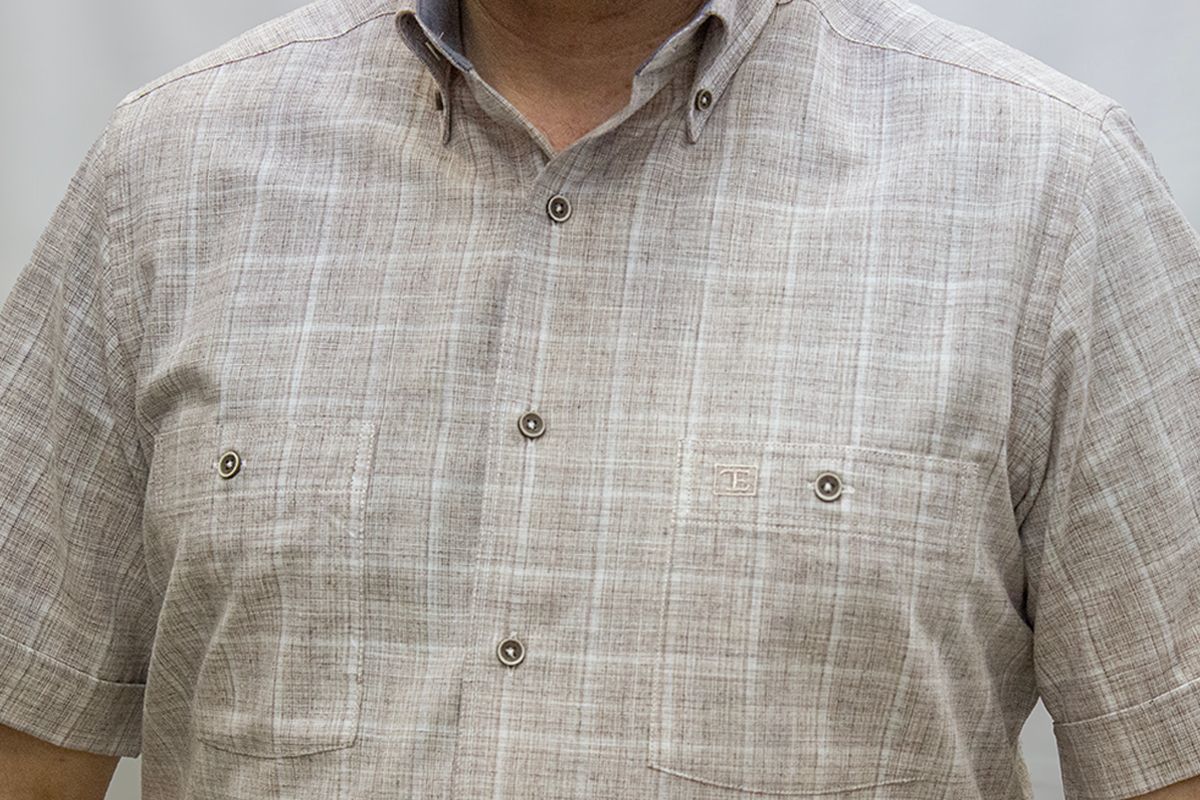 %80 Pamuk %20 Poliester keten görünümlü çift cepli kısa kol gömlek
