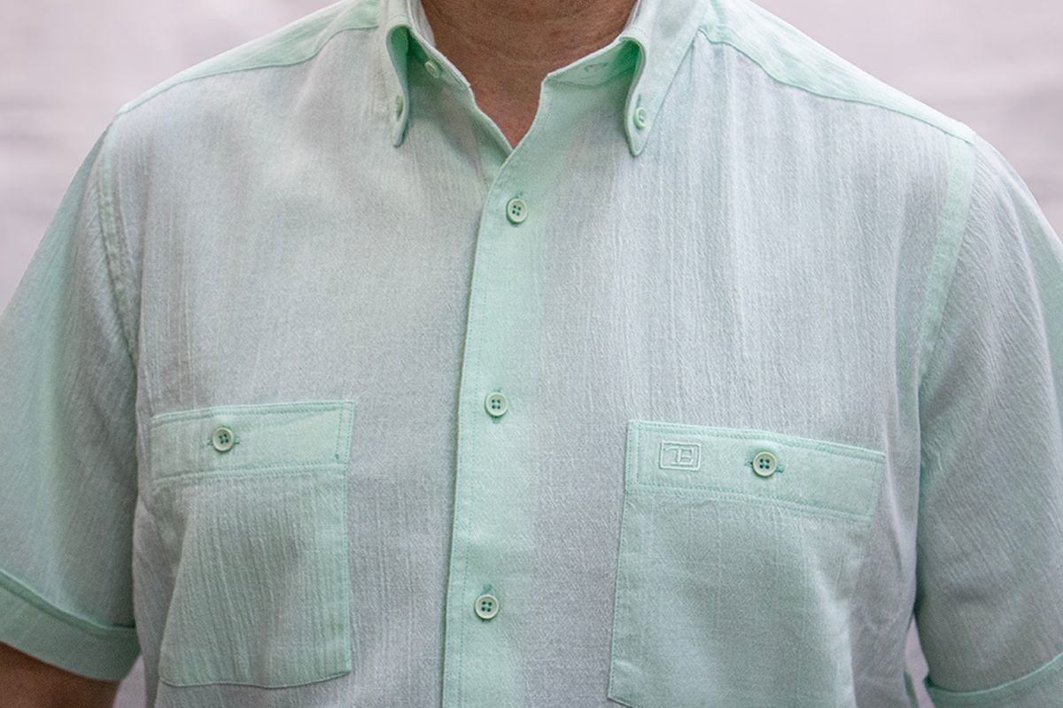 %100 Pamuk keten görünümlü kısa kol gömlek