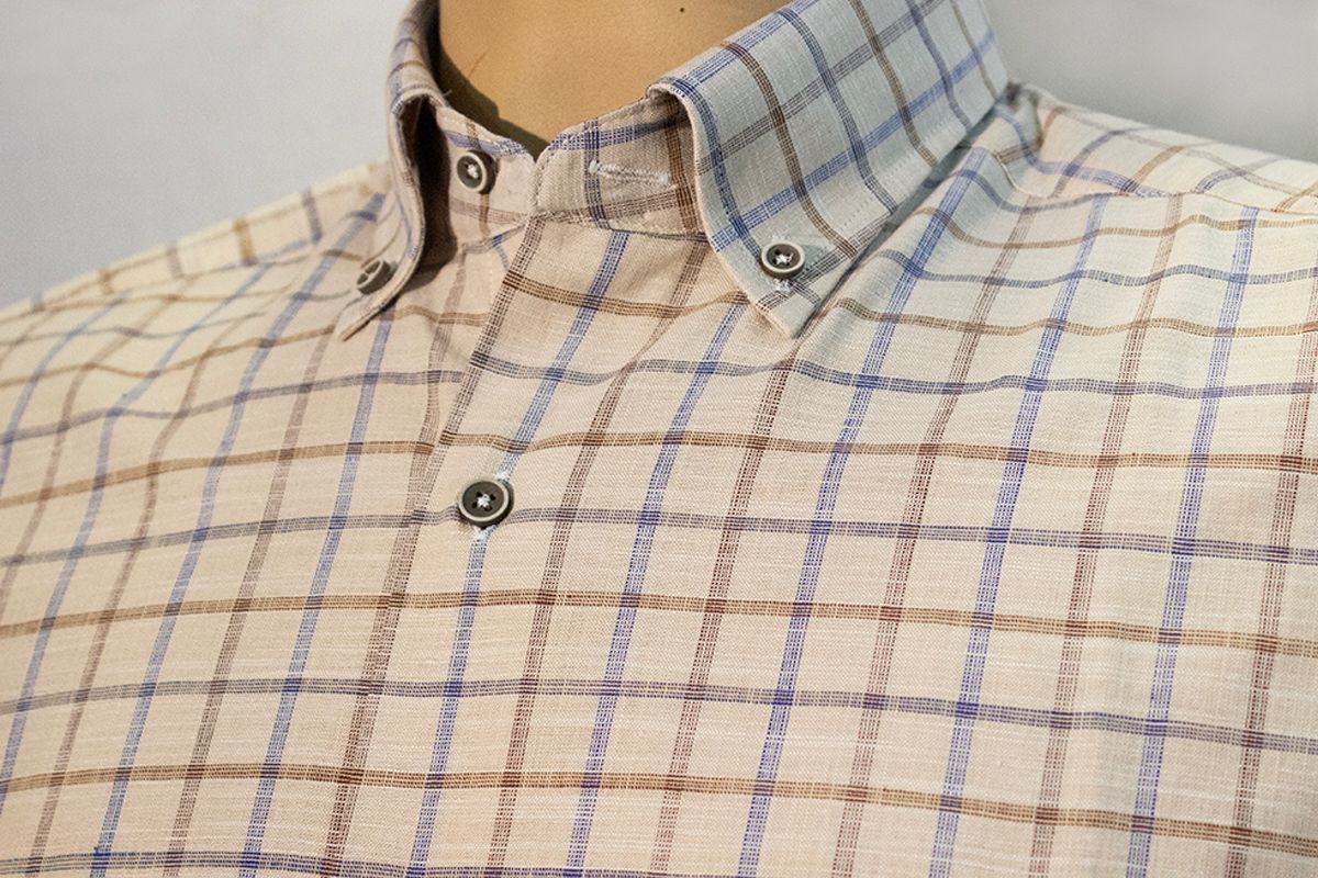 %100 Pamuk keten görünümlü kısa kol gömlek