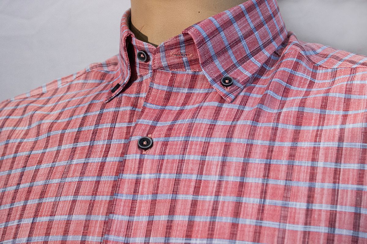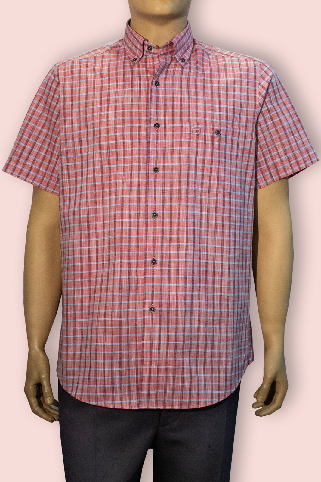 %100 Pamuk keten görünümlü kısa kol gömlek