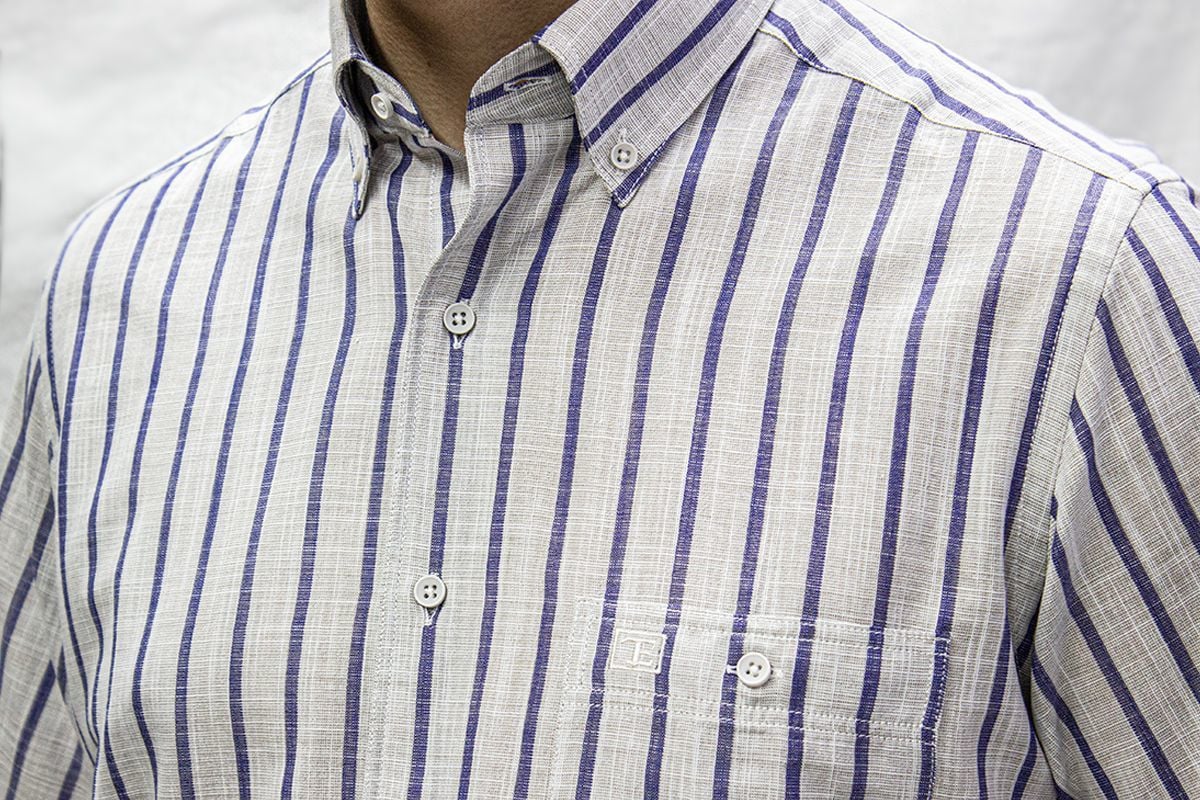 %100 Pamuk keten görünümlü kısa kol gömlek