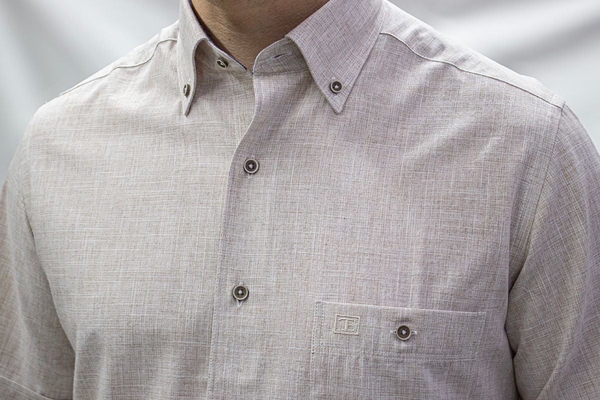 %80 Pamuk %20 Polyester kendinden desenli kısa kol gömlek