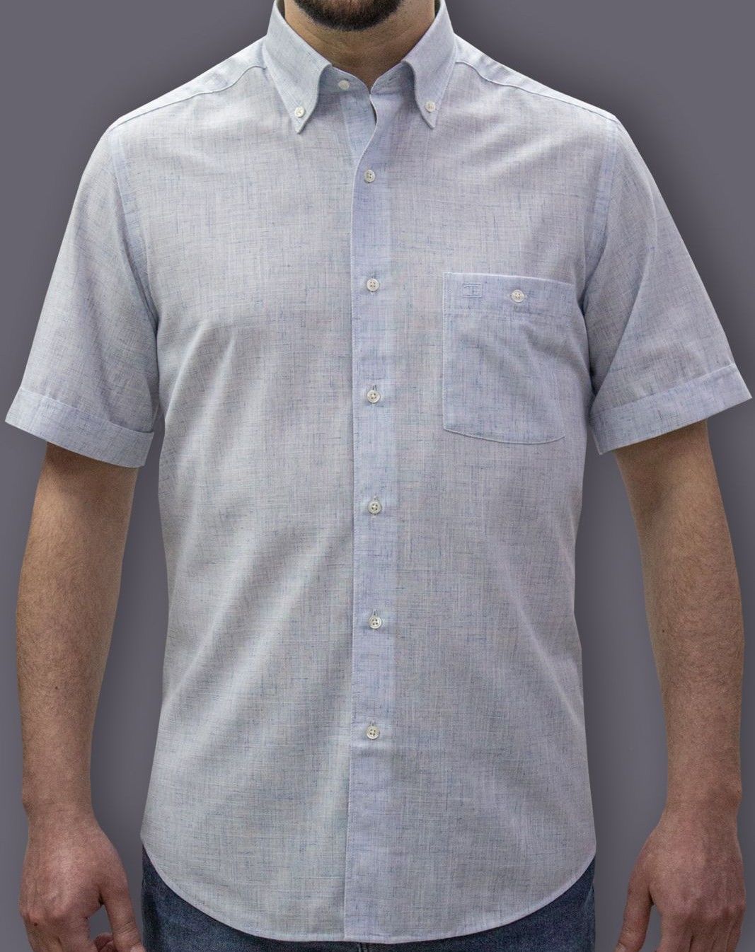 %80 Pamuk %20 Polyester kendinden desenli kısa kol gömlek