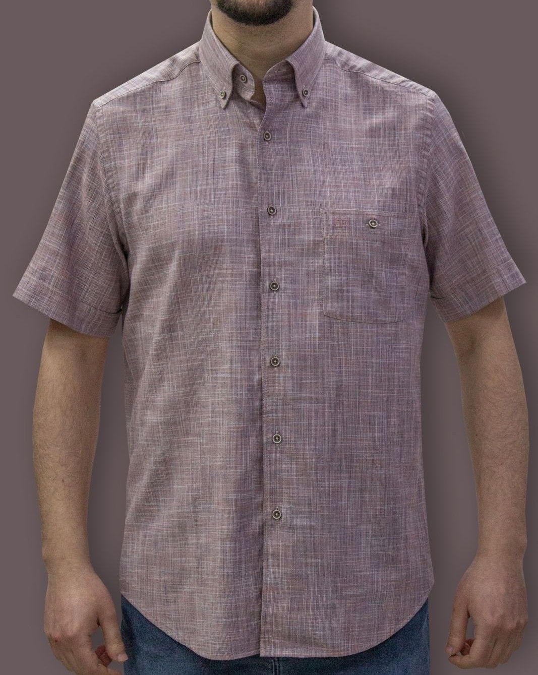 %100 Pamuk keten görünümlü kısa kol gömlek