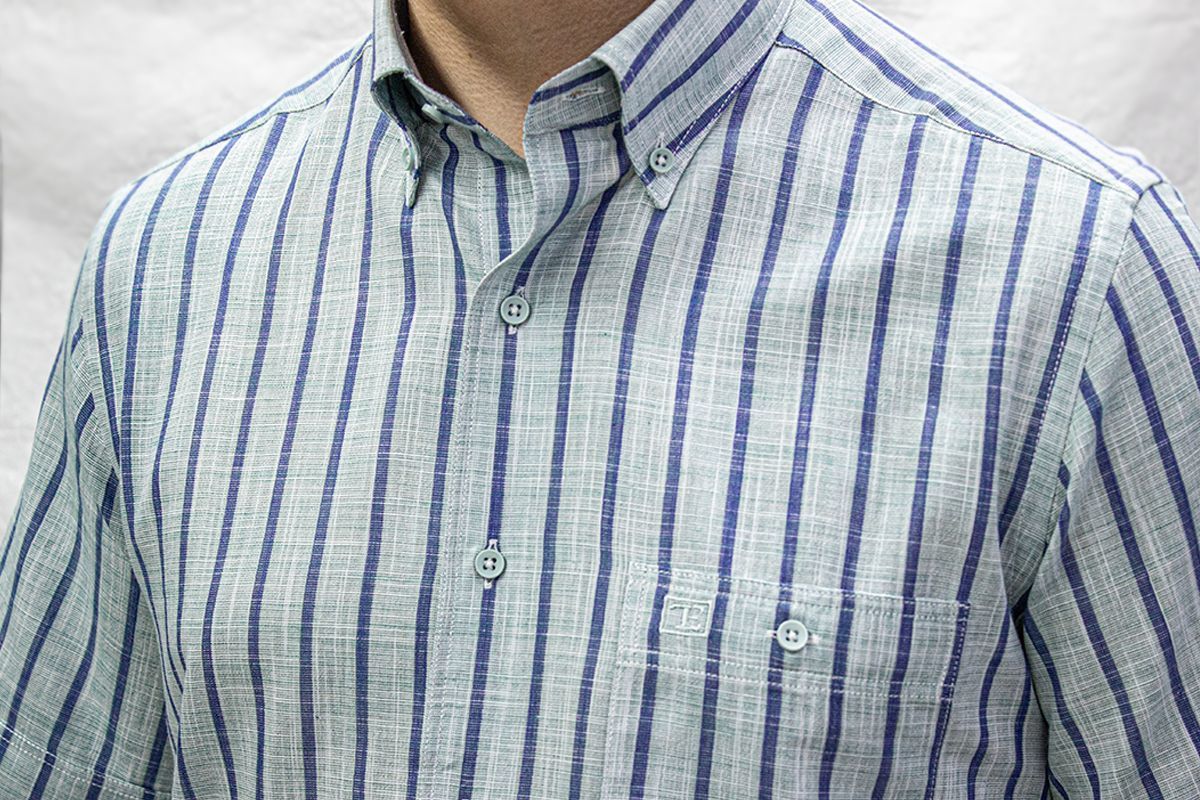 %100 Pamuk keten görünümlü kısa kol gömlek