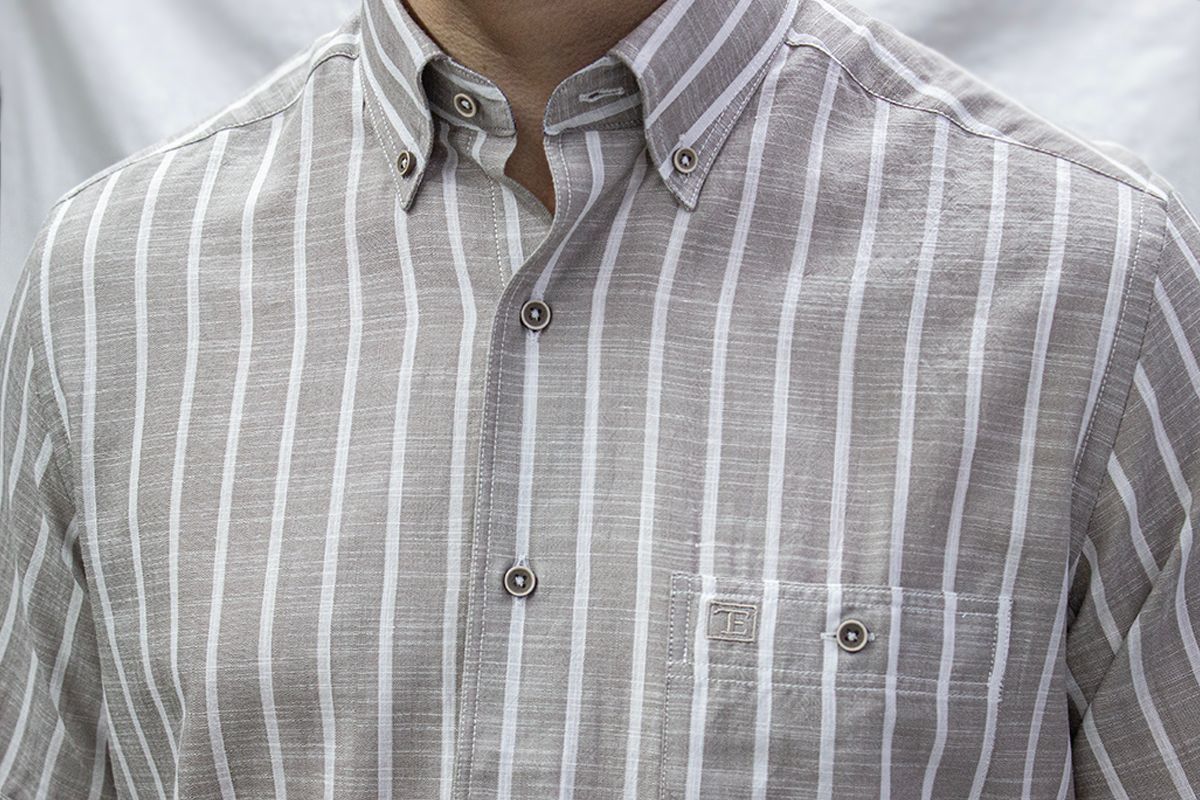 %100 Pamuk keten görünümlü kısa kol gömlek