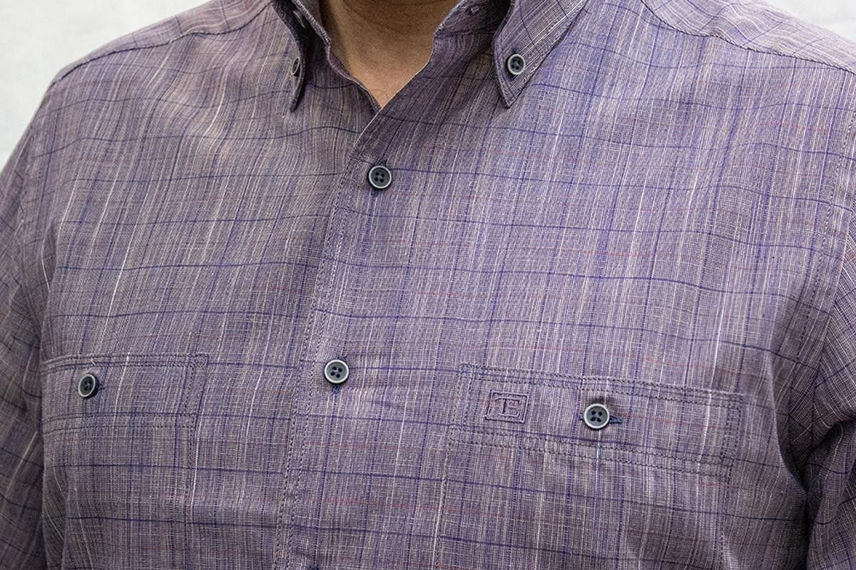 %100 Pamuk keten görünümlü kısa kol gömlek