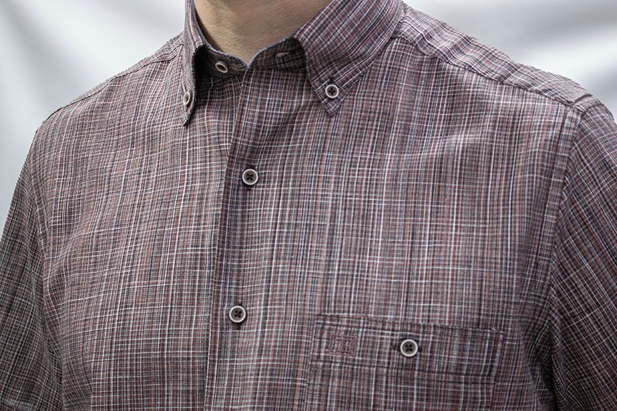 %100 Pamuk keten görünümlü kısa kol gömlek