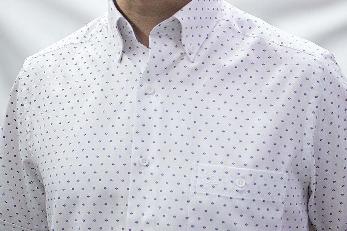 %80 %20 Poliester Pamuklu nokta desen kısa kol gömlek