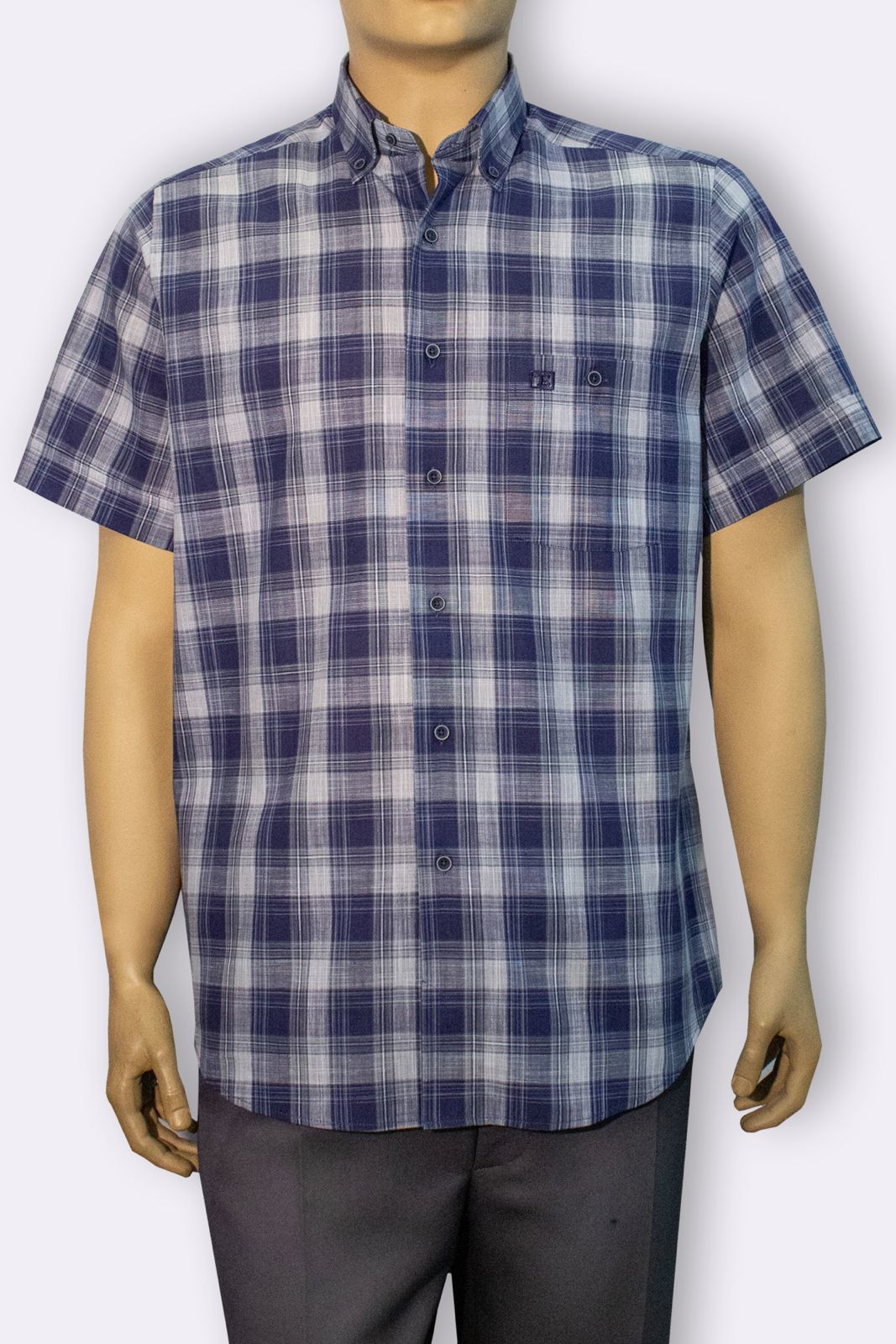 %100 Pamuk keten görünümlü kısa kol gömlek