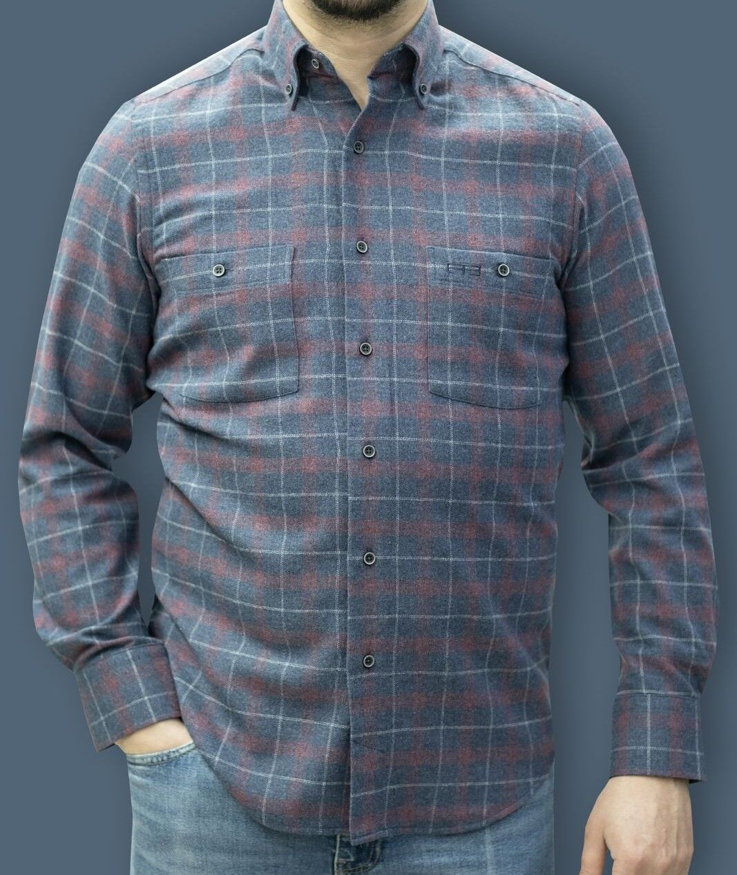 Kışlık Gömlek Çift Cep Lacivert Bordo 752-25k-5