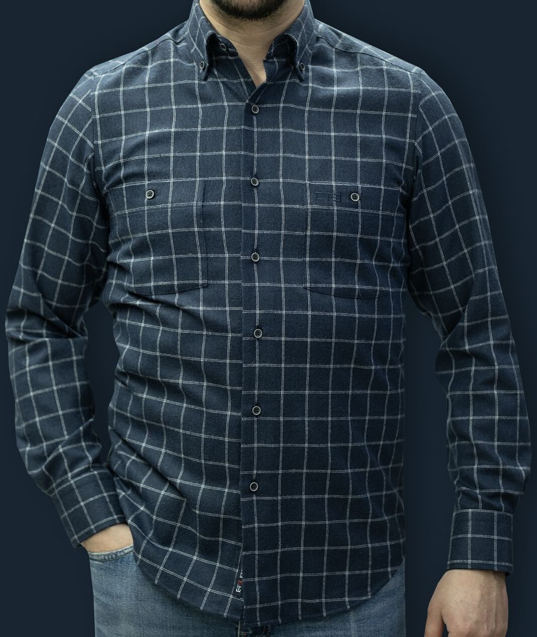 %80 Pamuk %20 Poliester klasik kesim çift cepli kışlık gömlek