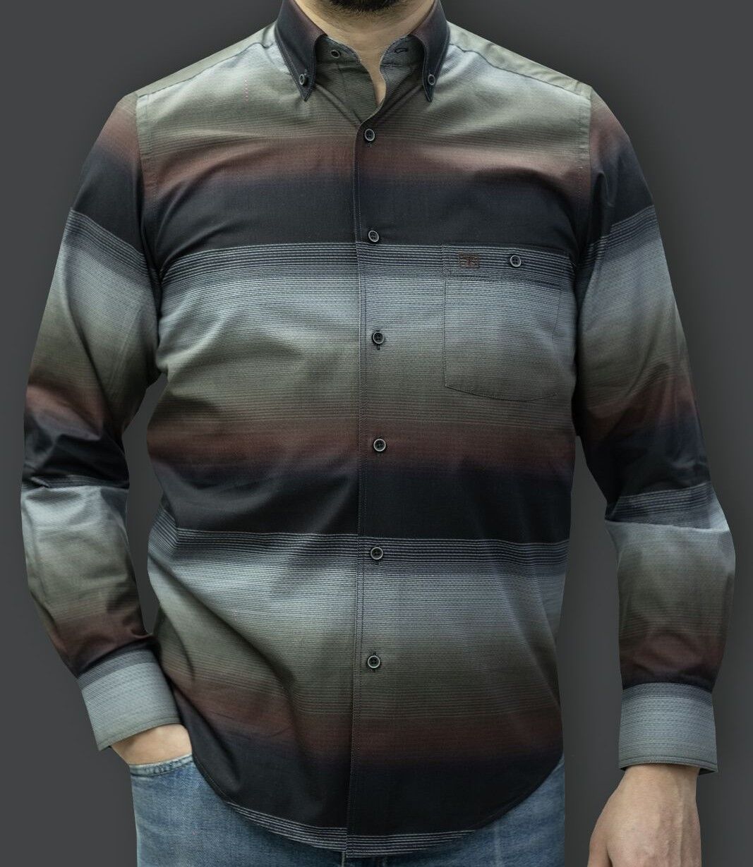 %100 Pamuk pano desen dijital baskı uzun kol klasik kesim gömlek