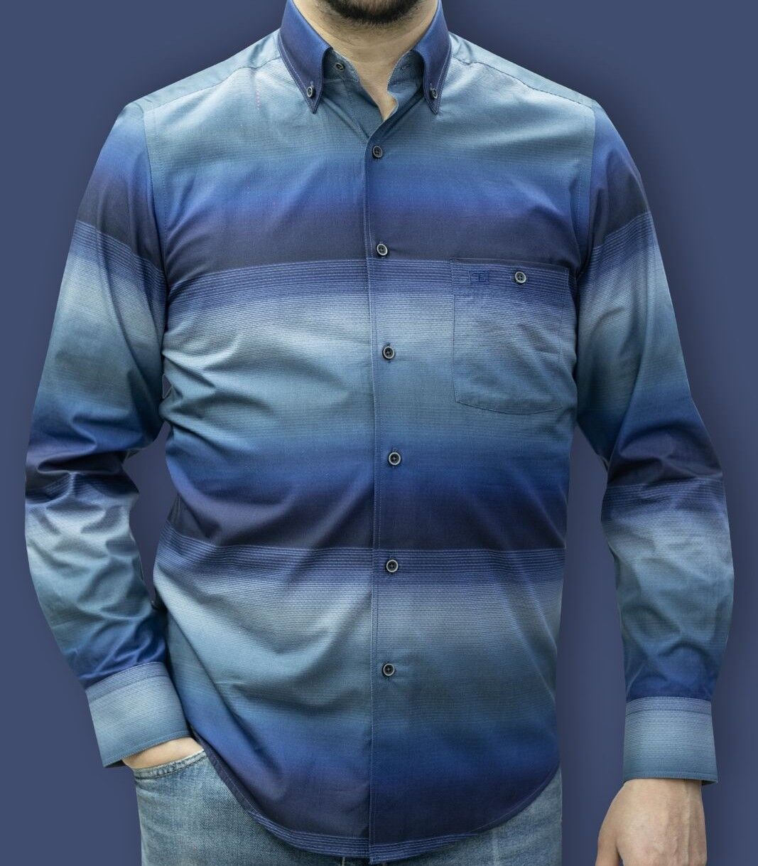 Uzun Kol %100 Pamuk Pano Desen Gömlek Lacivert-Saks Mavisi 574-25k-3