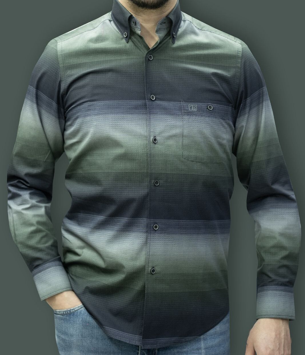 Uzun Kol %100 Pamuk Pano Desen Gömlek Lacivert-Yeşil 574-25k-2