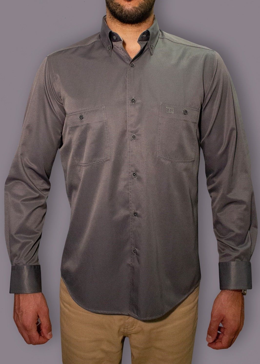 Uzun Kol Çift Cep Gömlek Koyu Gri 750s-23k-9