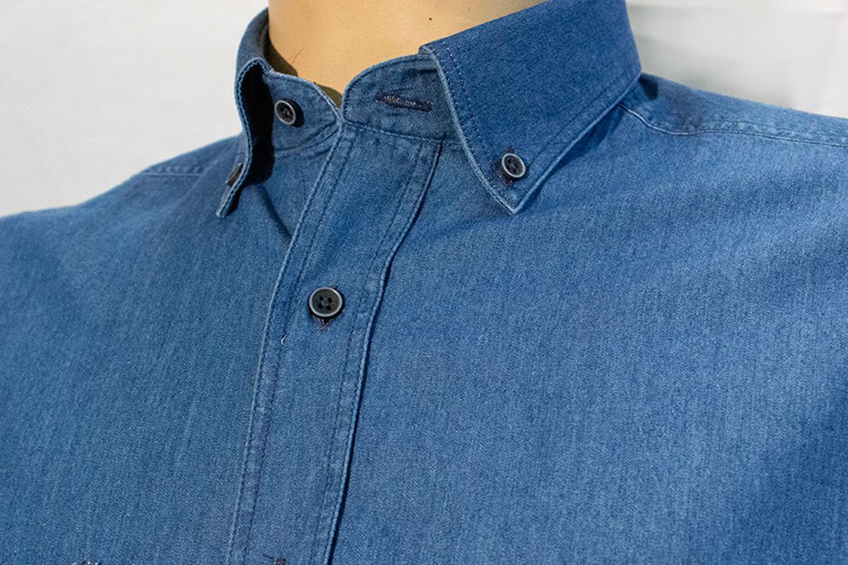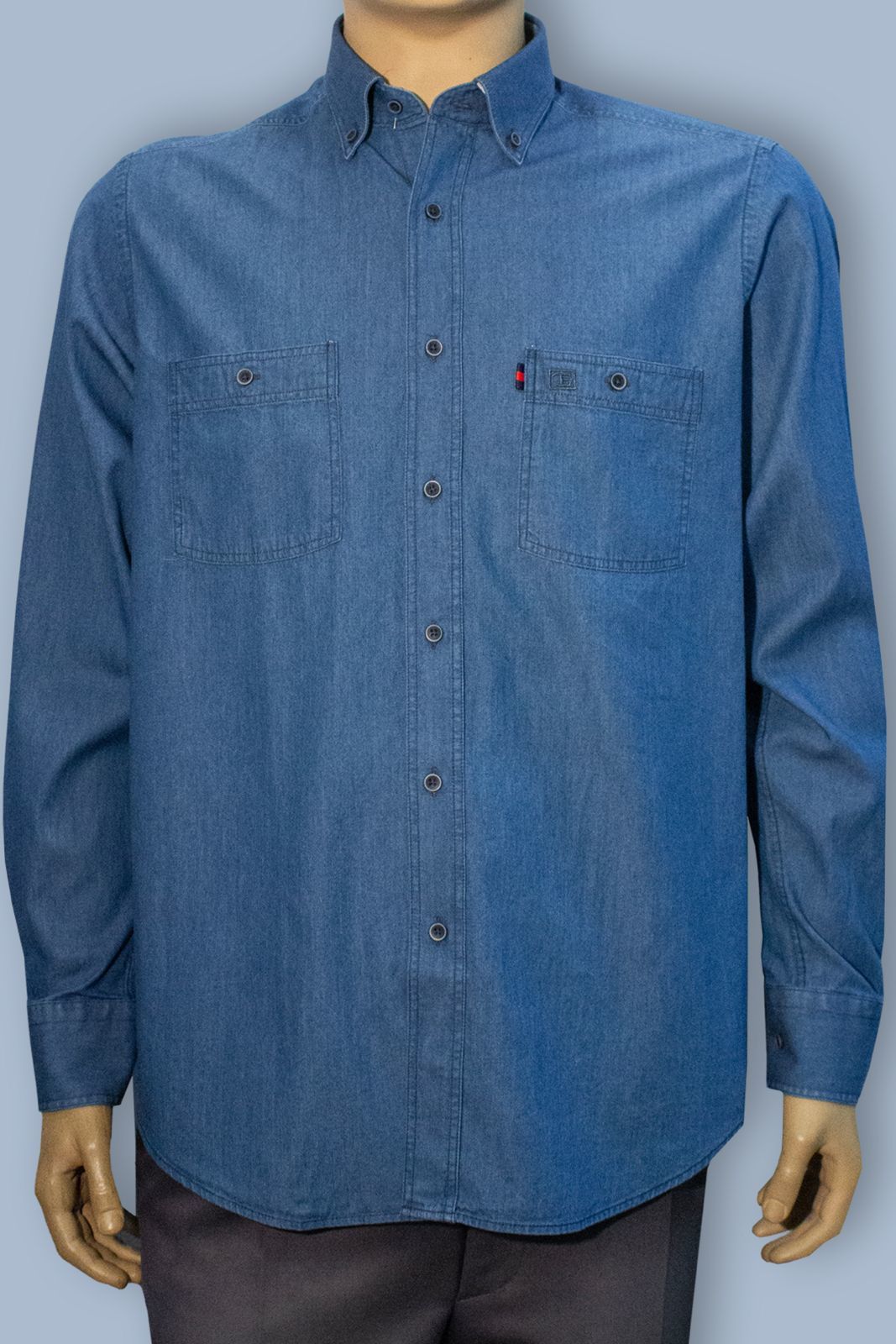%100 Pamuk çift cepli uzun kol kot gömlek